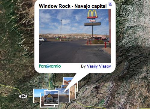 Window Rock is located on the Arizona and New Mexico border, north of Gallup New Mexico and north of Interstate 40. There’s a picture of Mcdonalds on Google Maps that could be the sign that crushed the car.