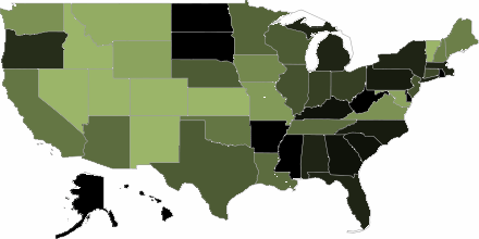 Right now, there is a woot-off on woot.com and the current product is a Hanna Montana branded 1GB Disney Mix Stick MP3 Player. What caught my attention was the woots by state chart, which shows New Mexico in the “lots of wooters wooting” side of green, opposed to the “zero wooters wooting” black side of the chart. Why are New Mexicans buying this Hanna Montana digital music player more than the rest of the country?